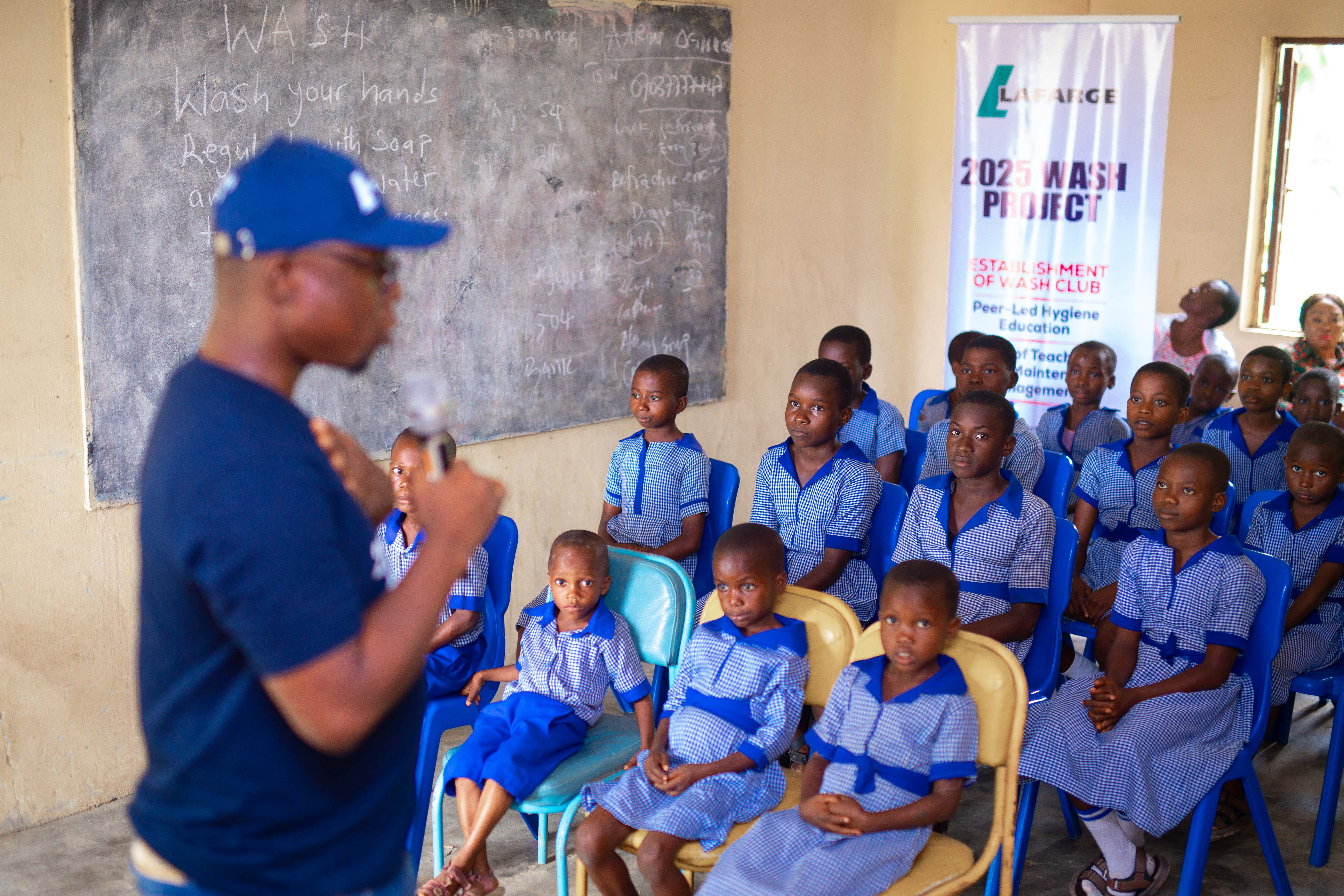 In addition to the club formation, school staff received practical training on facility maintenance and management. Sessions focused on proper upkeep of latrines and water facilities provided under the Lafarge 2025 WASH Project. Participants were also equipped with sanitation, hygiene, waste management, and cleaning materials to support effective maintenance. The outcomes of the activity were significant: increased awareness of sanitation and water safety practices, empowerment of learners to champion hygiene initiatives, and enhanced capacity of school staff to manage WASH facilities effectively.