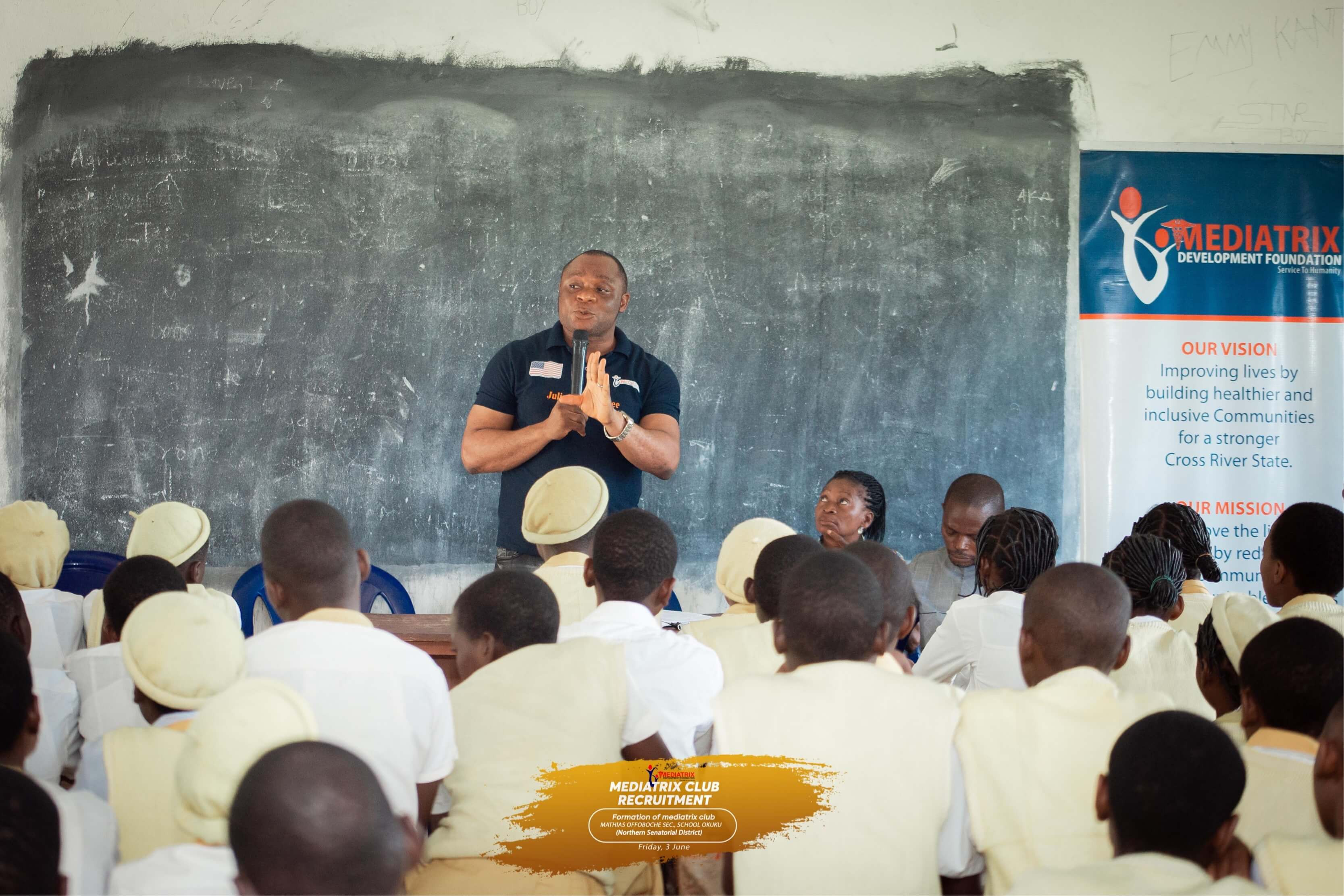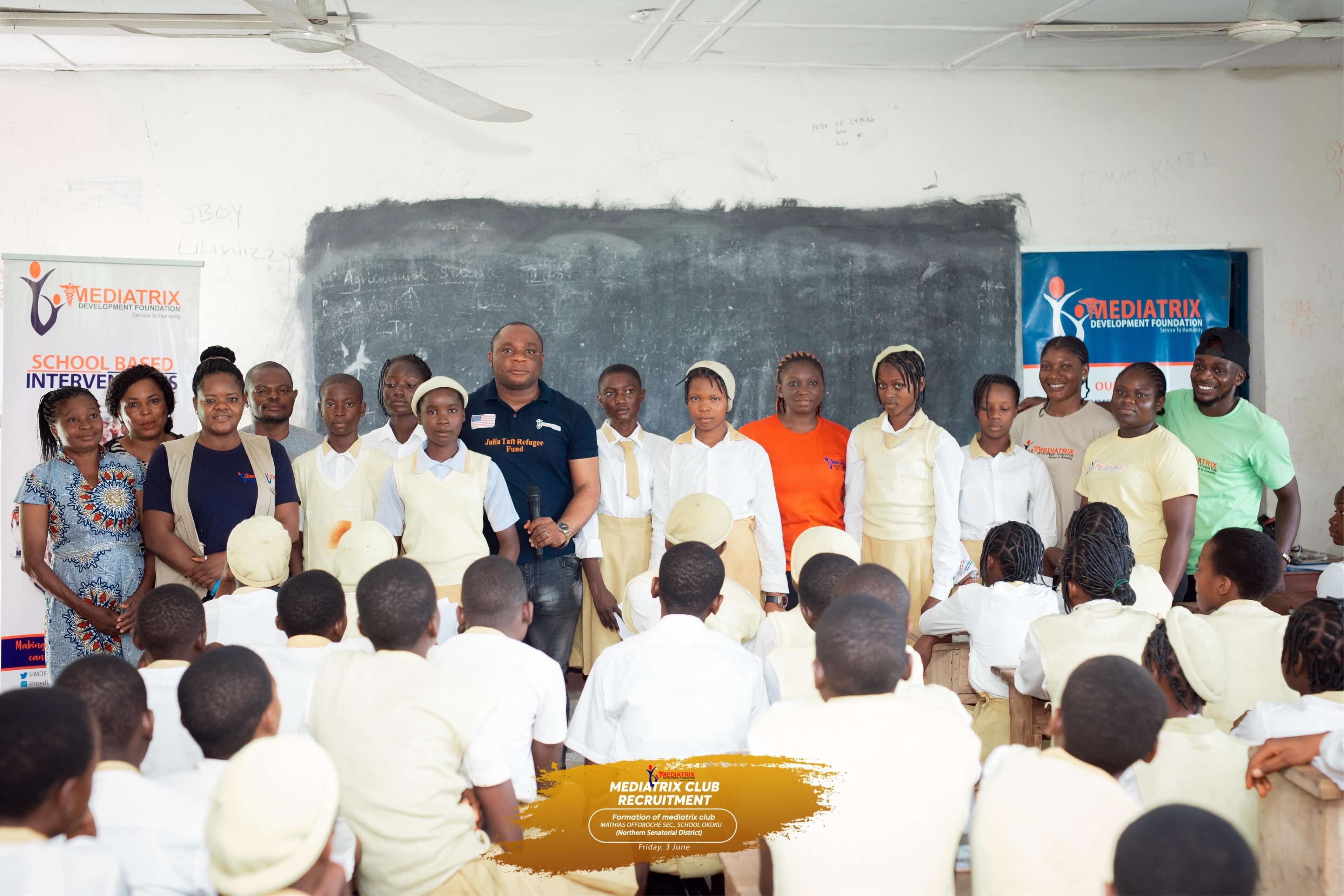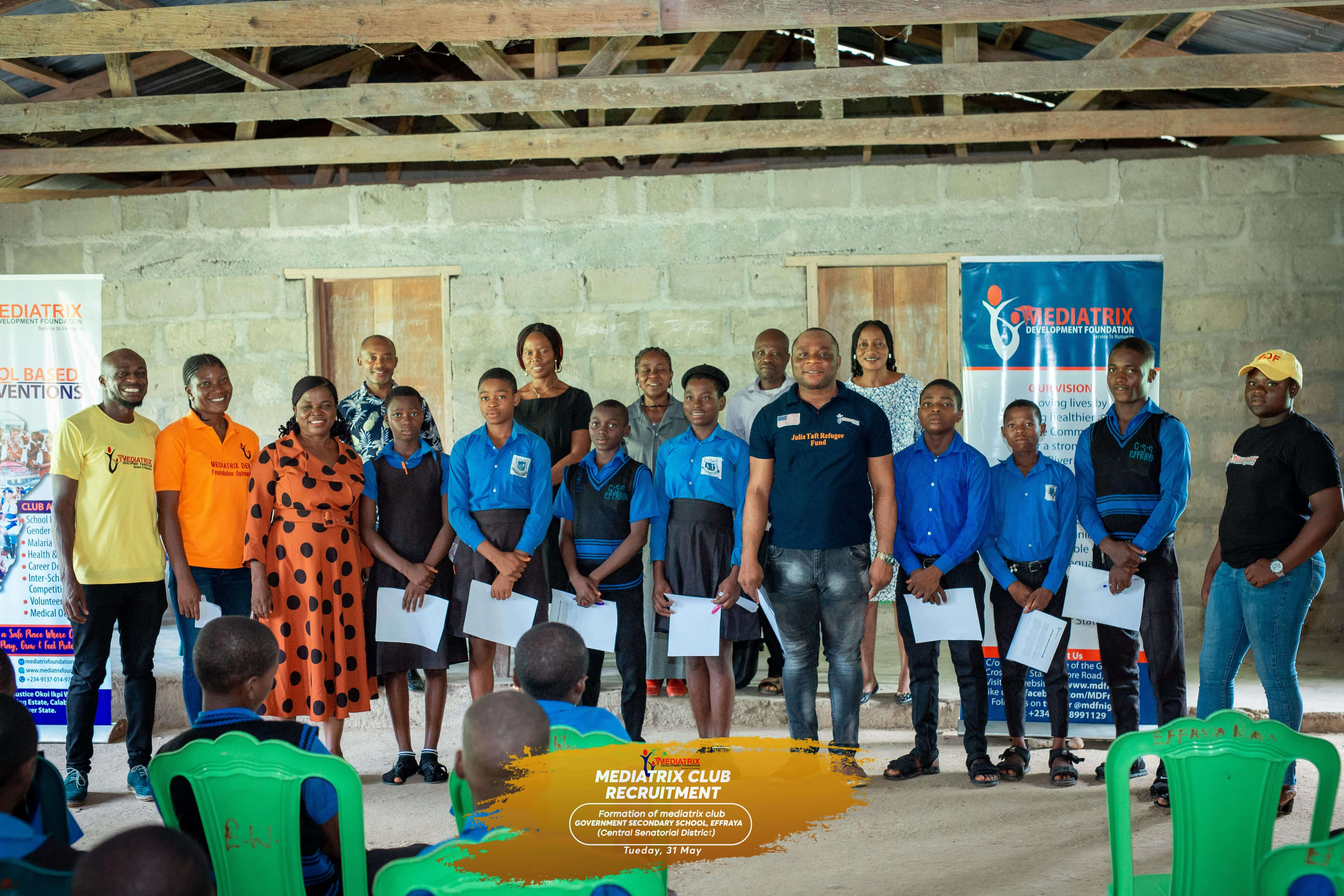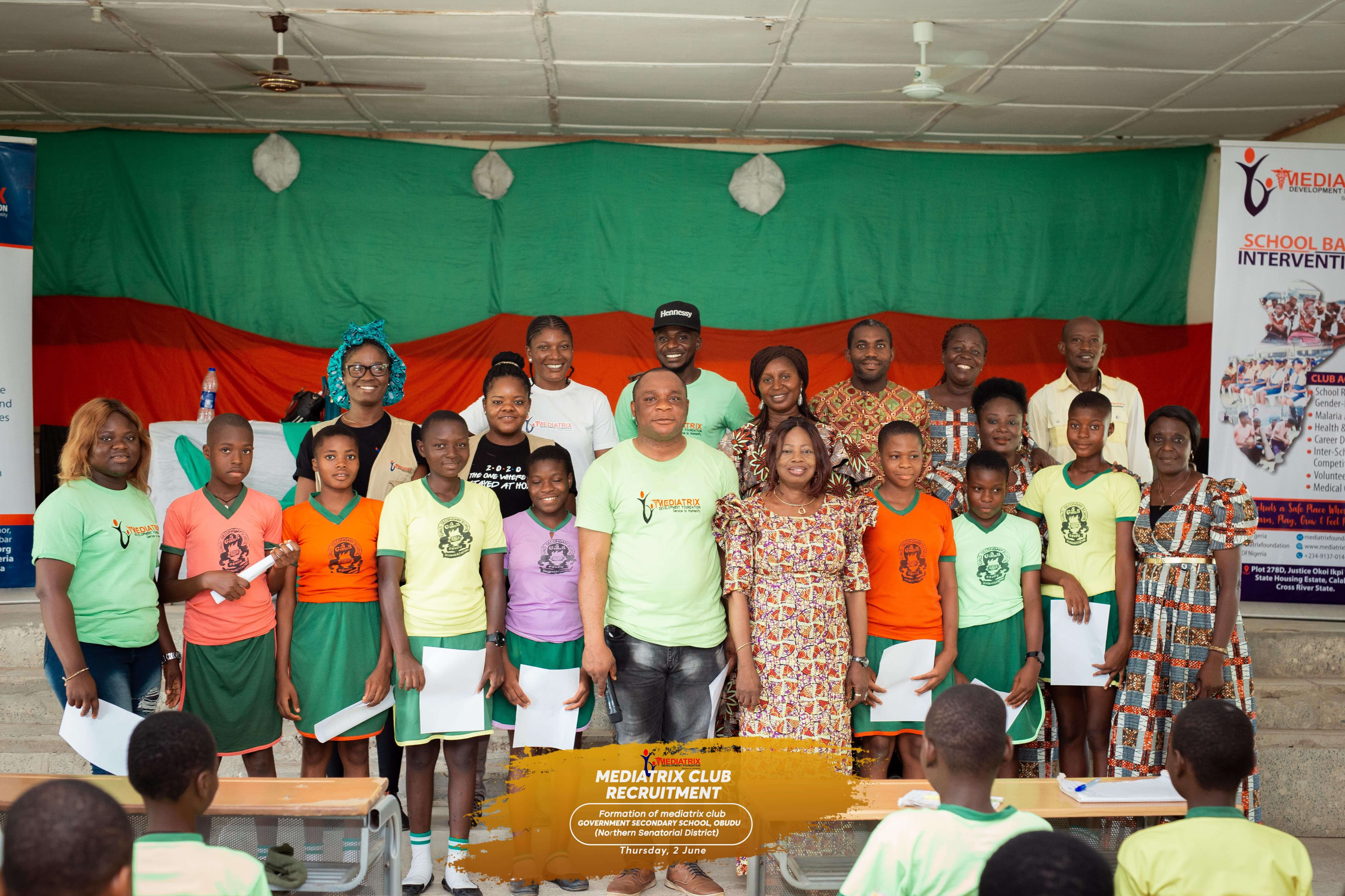 School based intervention is a pet Project of Her Excellency Dr Mrs Linda Ayade Initiated to create awareness on school related Gender Based Violence, Career Development, Menstrual Hygiene etc affecting the school children, its environment and outside. The Mediatrix Development Foundation team embarked on its club launch under it’s school based intervention in the Central and Northern Cross River State. The establishment of the club is aimed at increasing awareness on School related Gender based Violence, Career Development, Personal and Menstrual Hygiene etc.